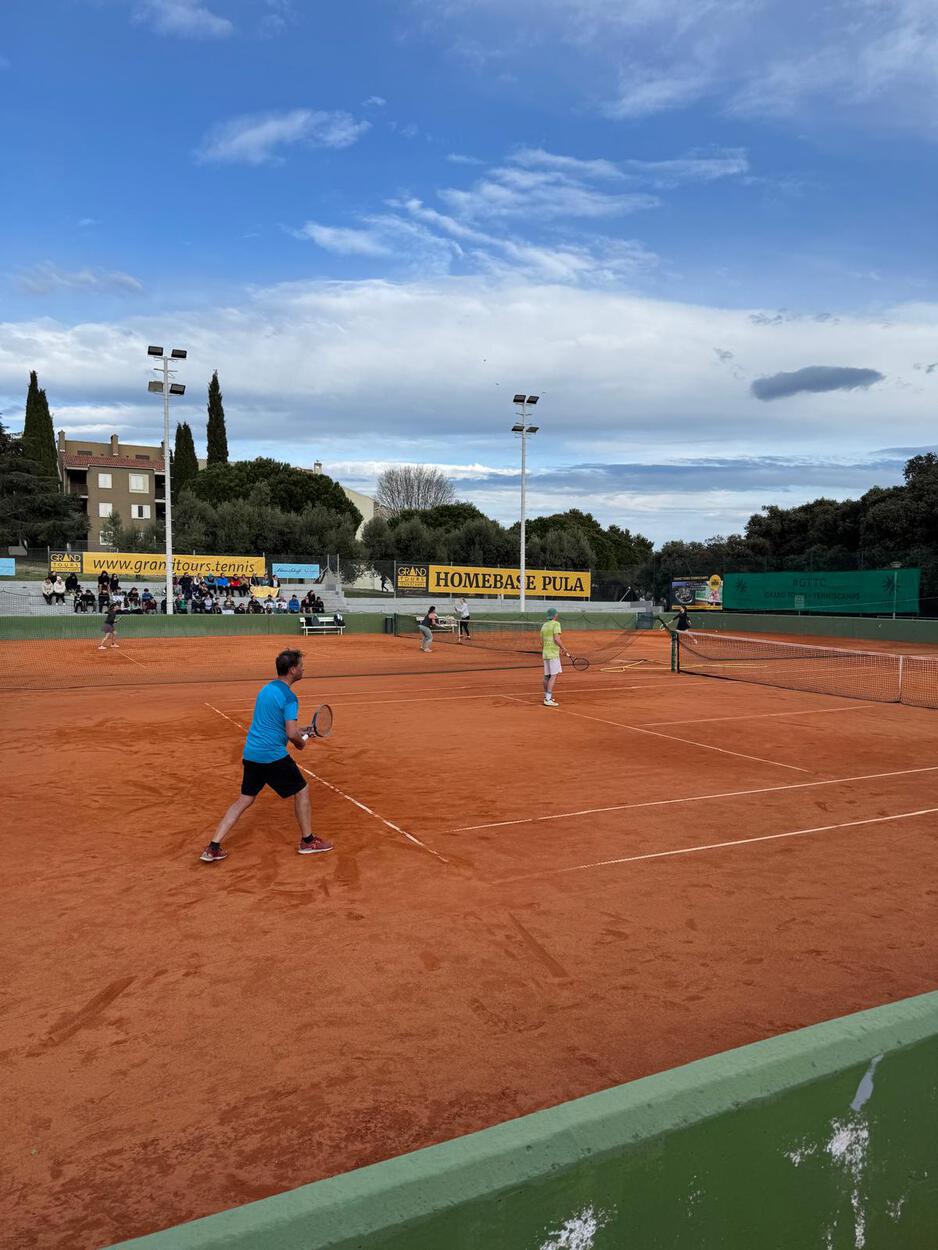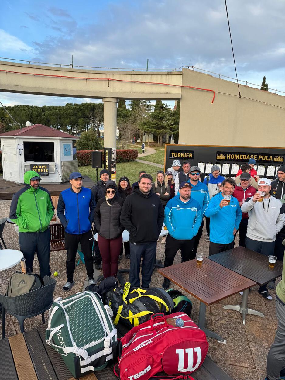 Auch heuer starteten wir wieder mit einer großen Gruppe von 41 Personen die Reise nach Kroatien. Unser Ziel war das Park Plaza Histria auf einer kleinen Halbinsel südlich von Pula. Nachdem wir letztes Jahr mit dem Wetter kein Glück hatten, hofften wir heuer auf Besserung. Wir wurden nicht enttäuscht und konnten diesmal wieder alle unsere Trainings abhalten, mit einer großen Anzahl beim Doppelturnier mitspielen, zahlreich bei Yoga am Meer mitmachen und auch unseren Freispielplatz zur Gänze ausnutzen. Bei den Trainings kamen wir ordentlich ins Schwitzen, da die Trainer alles von uns abverlangten. Der Erfolg gab ihnen aber recht, konnten wir doch alle Fortschritte bei unserem Spiel feststellen. Der Spaß auf der Tennisterrasse und am Abend in der Lobby bzw. am Montagabend in der Disco kam auch nicht zu kurz. Beim Frühstück und Abendessen wurden wir auch heuer wieder verwöhnt, da beim Buffet für jeden etwas dabei war. Besonders erfreulich war das Abschneiden beim Doppelturnier der Herren, wo gleich drei Bad Haller Doppel im Halbfinale standen. Letztendlich konnten sich Harry und Peter den Turniersieg sichern. Wir wollen uns bei allen mitreisenden Personen für den reibungslosen Ablauf, bei unserem Obmann Manuel für die Organisation und bei Grand Tours Tenniscamp für das tolle Trainingslager bedanken! Wir freuen uns schon auf nächstes Jahr und hoffen, dass auch wieder so viele dem Ruf Richtung Süden folgen werden!